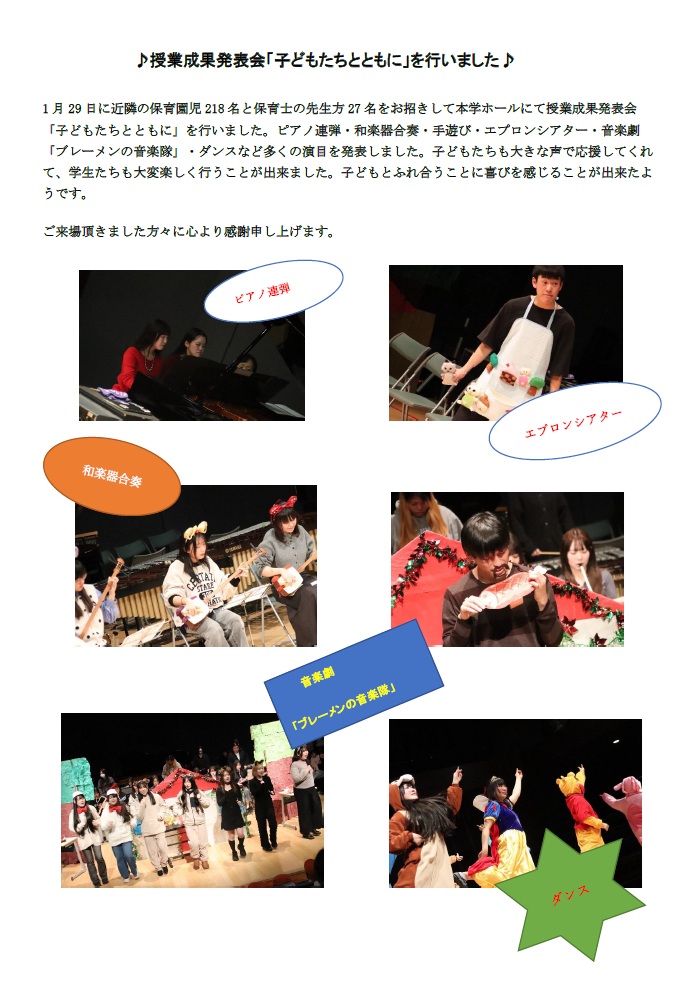 ♪授業成果発表会「子どもたちとともに」を行いました♪